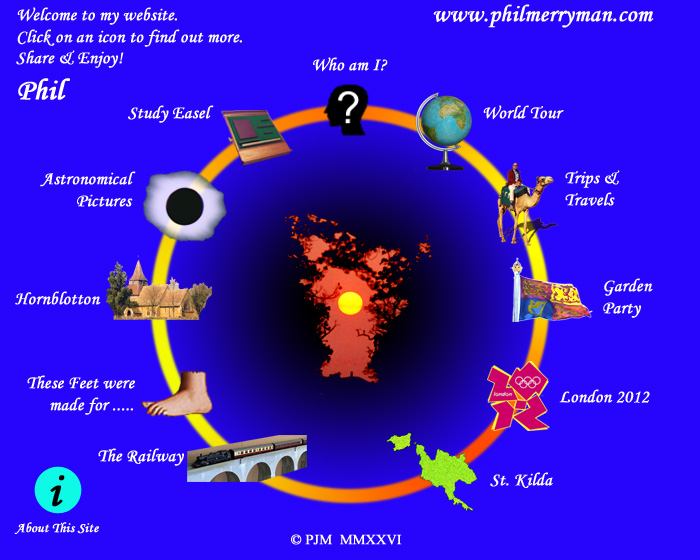 [Who am I?] [Study Easel] [Astronomical Pictures] [Hornblotton] [These Feet] [Railway] [World Tour] [Trips] [Garden Party] [London 2012] [St Kilda] [About This Site]