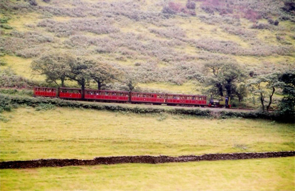 Loco No. 2 Dolgoch with train heading down just out from Abergynolwyn.